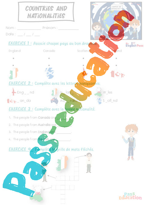 Exercice 3 : Complète avec la bonne nationalité.