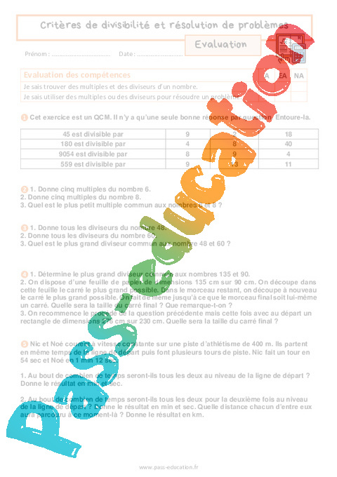 Correction évaluation : Secondaire 3 Critères de divisibilité et résolution de problèmes pdf