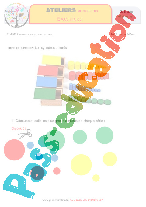 Cylindres colorés-Montessori 5-Exercices-Corrections pdf