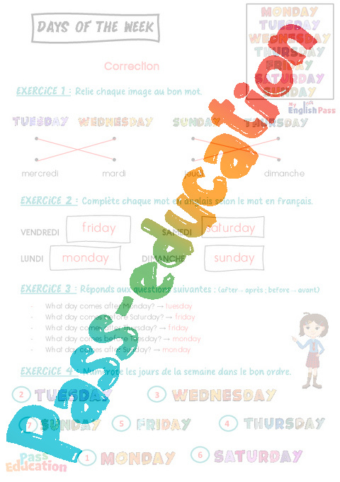 Exercices sur Days of the week – Apprends l’anglais avec Kelly and James.