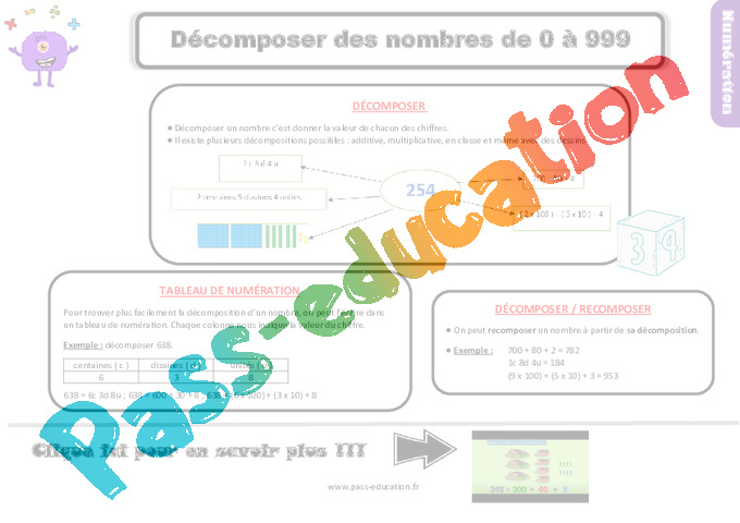 Trace écrite, leçon à imprimer niveau : Primaire 3 sur décomposer des nombres de 0 à 999