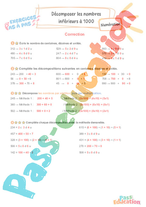Correction Décomposer les nombres inférieurs à 1000 : Primaire 3 – Exercices Pas à Pas rtf