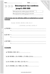 Exercices à imprimer – Séance 2 en Primaire 4 : Décomposer les nombres jusqu’à 999 999 Compétences : Décomposer les nombres jusqu’à 999 999