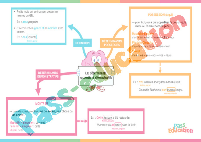 Déterminants possessifs et démonstratifs : Primaire 4 Carte mentale pdf