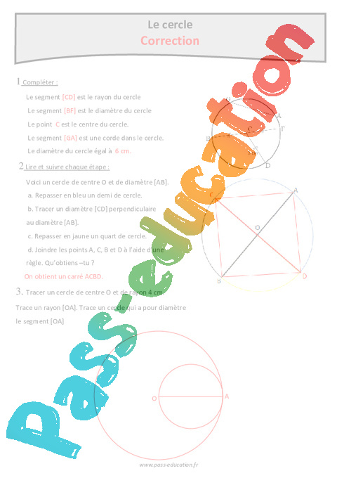 Correction – Diamètre, rayon, segment et point : Primaire 5 – Exercices sur le cercle pdf