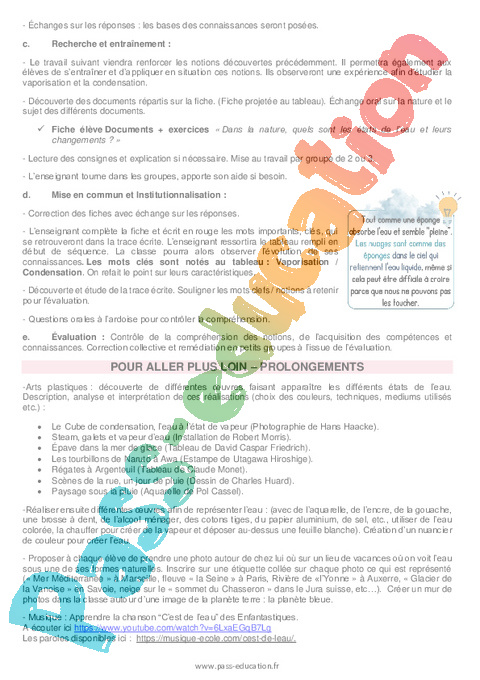 - Fiche élève Documents + exercices « Dans la nature, quels sont les états de l’eau et leurs changements ? »
