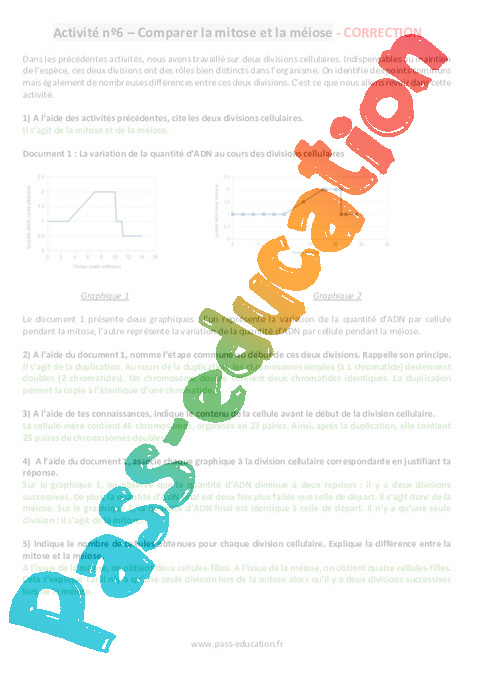 Activité n°6 - Comparer la mitose et la méiose Correction pdf