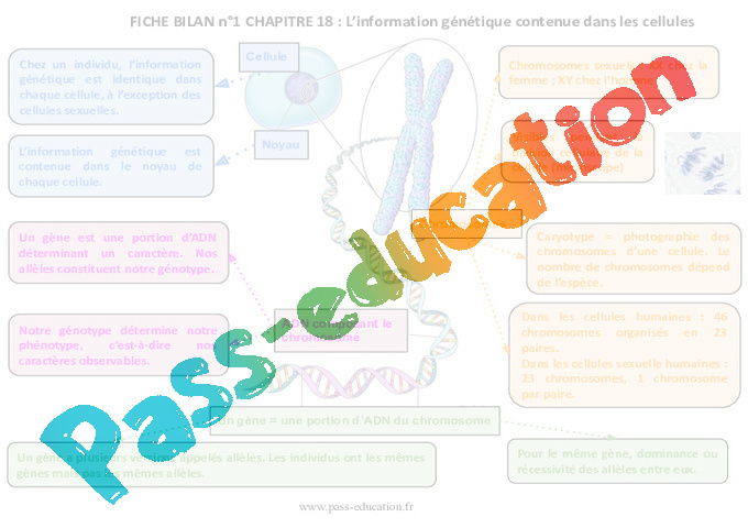 Notions : Information héréditaire, le caryotype, caractères / chromosomes / ADN, gène / allèles / mutation, mitose, méiose, diversité des individus