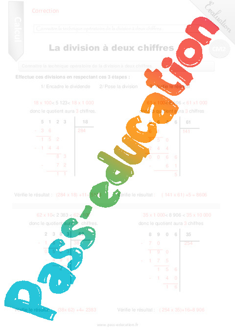 Division à 2 chiffres : Primaire 5 -Evaluation-Bilan-Correction pdf