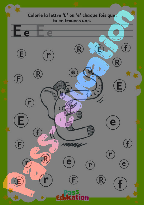 Colorie la lettre ‘E’ ou ‘e’ chaque fois que tu en trouves une.