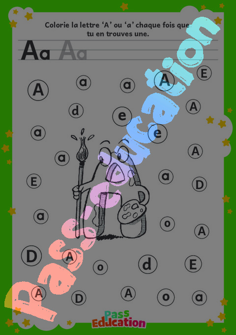 Colorie la lettre ‘A’ ou ‘a’ chaque fois que tu en trouves une.