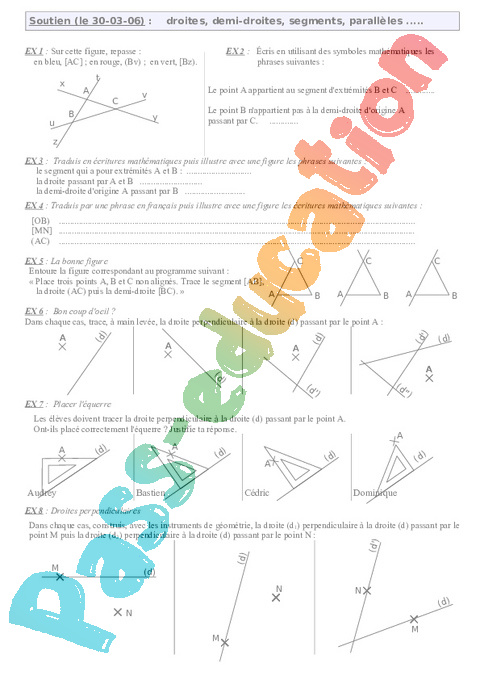 Soutien (le 30-03-06) : droites, demi-droites, segments, parallèles …..