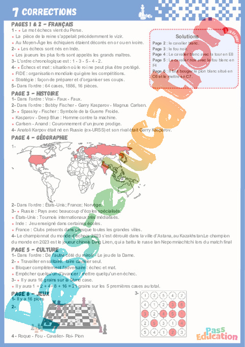 Fichier d’activités sur les échecs pour la Primaire 4, 5 et la Primaire 4, 5 .