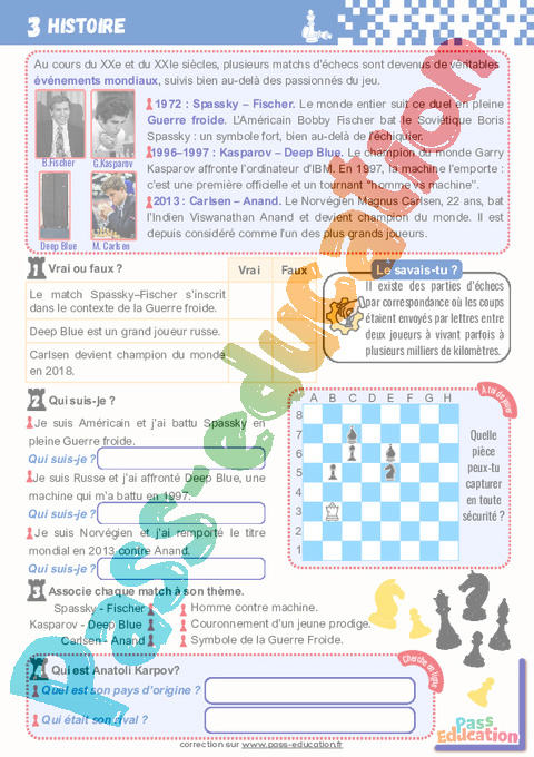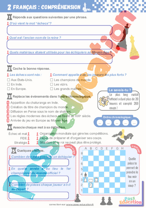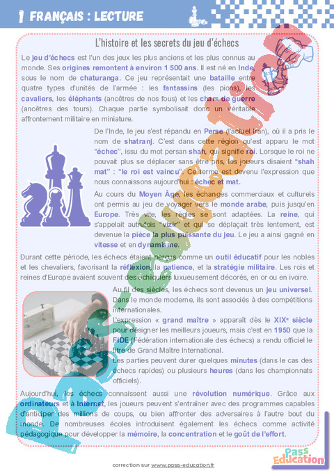 Français – Lecture 1 : L’histoire et les secrets du jeu d’échecs