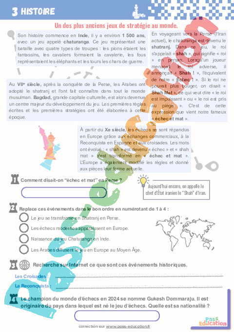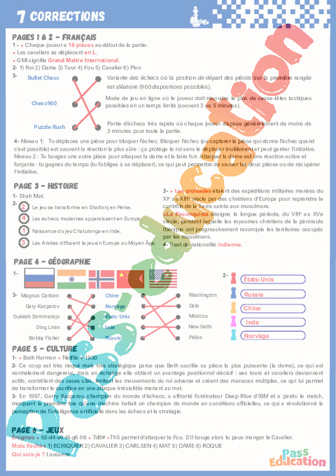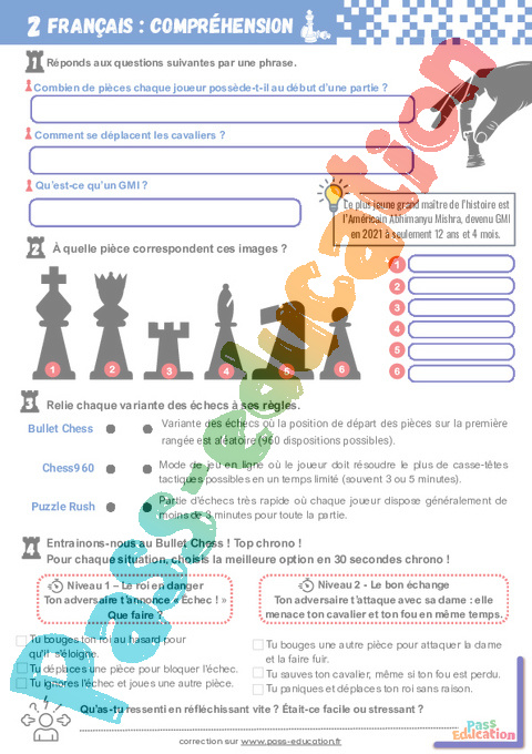Fichier d’activités sur les échecs pour la Secondaire 1, 2 et la Secondaire 1, 2 .
