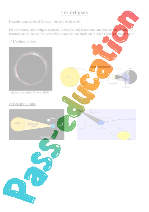 Eclipses – Cours, Leçon – Sciences : Primaire 4, 5 – PDF à imprimer