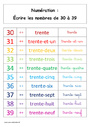 Ecrire les nombres de 30 à 39 : Primaire 1 – Affiche pour la classe  pdf