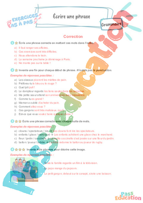 Correction Écrire une phrase : Primaire 3 – Mémo + Exercices Pas à Pas pdf