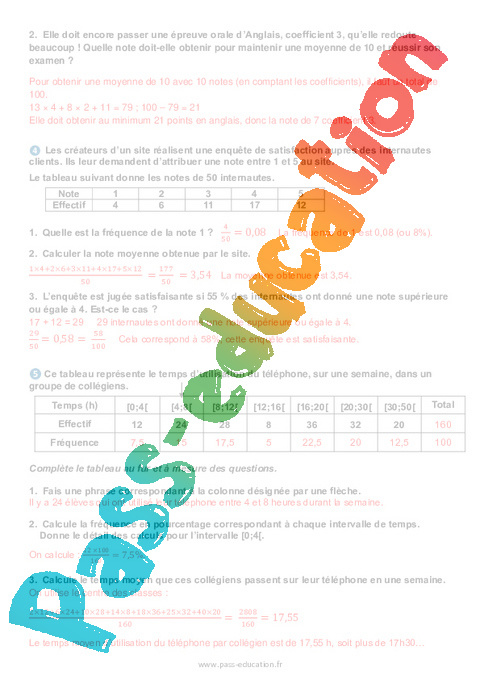 Exercices Correction Effectif, fréquence et moyenne (statistiques) : Secondaire 2 pdf