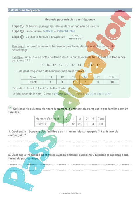 Remarque : on peut exprimer la fréquence sous forme décimale, de fraction ou de pourcentage.