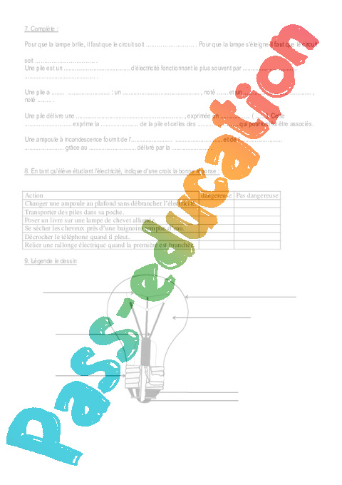 L’électricité: Primaire 3, 4, 5 : Evaluation – l’électricité pdf