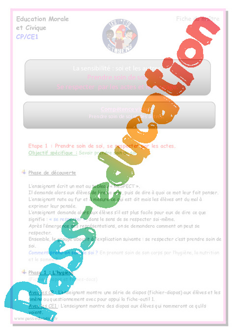 Prendre soin de soi : Primaire 1 - Fiche de préparation pdf