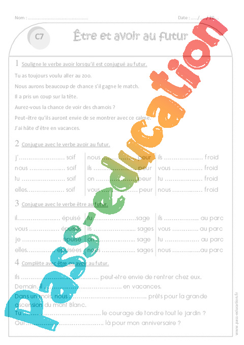 Etre et avoir au futur : Primaire 2 – Exercices à imprimer   rtf