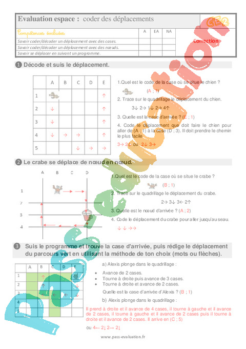 Coder des déplacements en Primaire 3 – Evaluation, bilan à imprimer avec correction