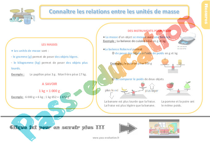 Leçon : Primaire 2 sur connaître les relations entre les unités de masse pdf