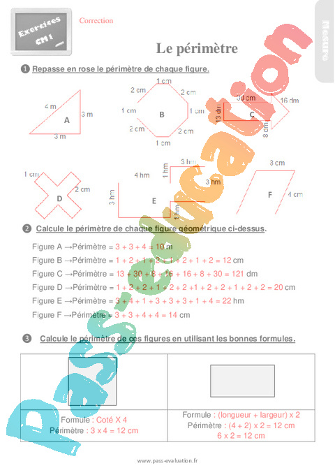 Exercices : Primaire 4 sur le périmètre – Correction pdf