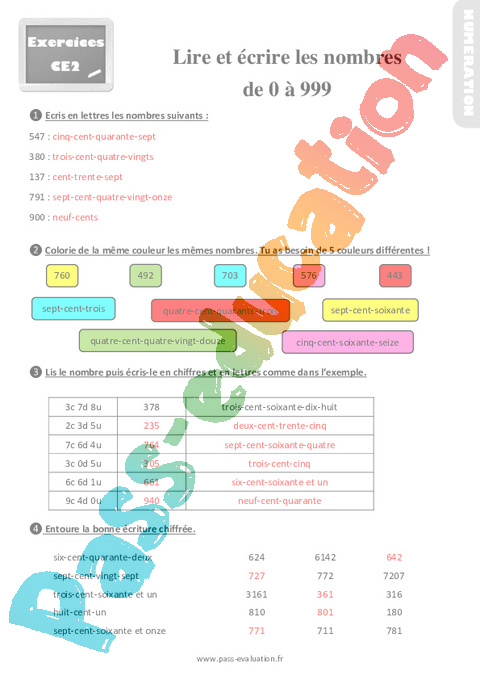 Lire et écrire les nombres de 0 à 999 : Primaire 3 – Exercices – Correction pdf