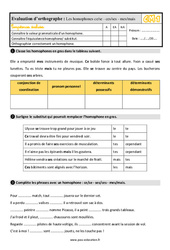 Les homonymes – Évaluation, bilan : Primaire 4 – PDF à imprimer