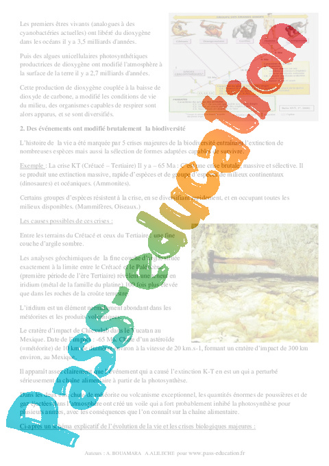 II. Les événements géologiques planétaires passés, ont entrainé des modifications du peuplement de la Terre