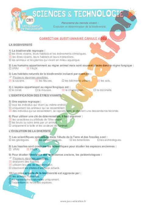 3.1 Correction QCM : Primaire 4 Évolution et détermination de la biodiversité pdf