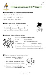 : Primaire 4, 5 – Exercices à imprimer – Présent de l’indicatif Verbes du 1er groupe et du 2ème groupe Je cherche l’infinitif des verbes et je donne leur groupe.