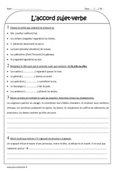 : Primaire 3 – Exercices à imprimer sur l’accord du sujet avec le verbe Consignes pour ces exercices : 1 Souligne le sujet et entoure la terminaison du verbe. 2 Complète les phrases en accordant chaque verbe avec son sujet. 3 Entoure le verbe conjugué qui convient. 4 Récris les phrases suivantes en mettant les sujets au pluriel. Voir les fiches