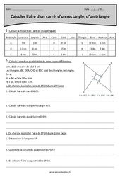 Exercices avec correction sur le calcul de l’aire Calculer l’aire d’un carré, d’un rectangle, d’un triangle 1- Calcule la mesure de l’aire de chaque figure. 2- Calcule l’aire d’un quadrilatère de deux façons différentes. Soit ABCD un carré de côté 5 cm. Les triangles ABF, DEA, CHD et BGC sont des triangles rectangles. Calcule l’aire du carré ABCD. Calcule l’aire du triangle rectangle AFB. Calcule l’aire du quadrilatère EFGH. Voir les fichesTélécharger les documents Calculer l’aire: Carré, rectangle, triangla Primaire…