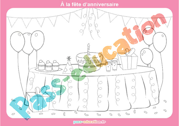 Les graphismes ludiques de Pass Education en : Maternelle 1, 2 sur : Fête d’anniversaire.