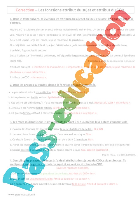Fonctions attribut du sujet et attribut du COD : Secondaire 3 – Evaluation avec le corrigé pdf