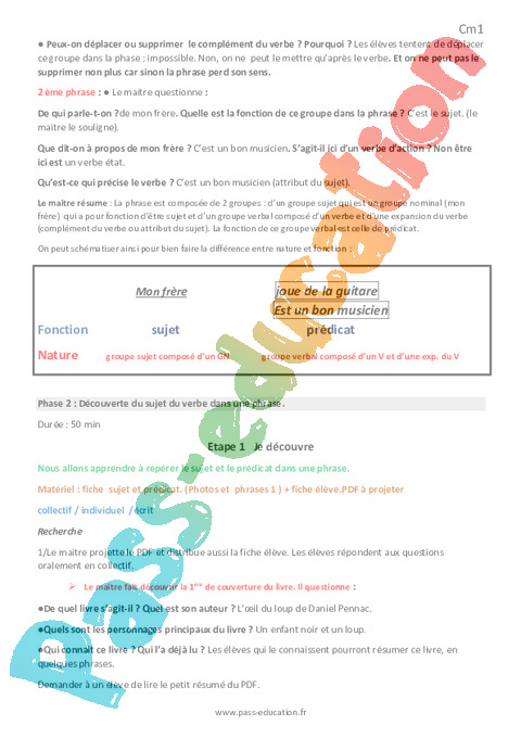 Fonctions sujet et prédicat : Primaire 4 – Fiche de préparation pdf
