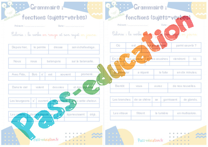 Colorie : le verbe en rouge et son sujet en jaune.