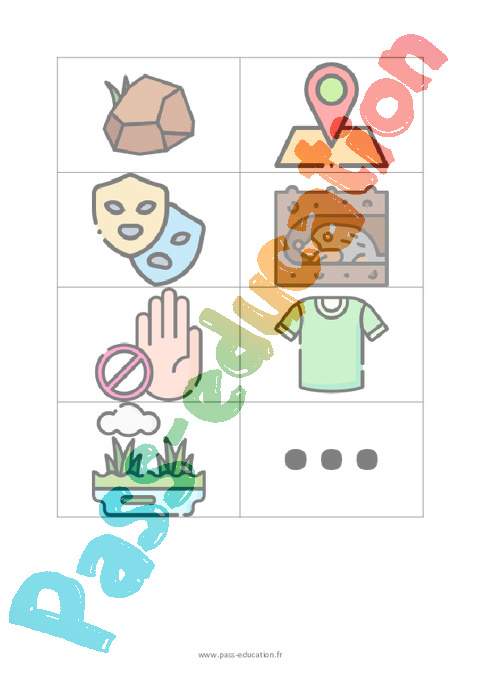 ◾ Jeu de mémorisation : Constituer 3 ou 4 équipes selon le nombre d’élèves en classe. Les élèves se placent en file indienne. Montrer les flashcards sans lexique et demander aux élèves de l’équipe A de donner le vocabulaire correspondant (chaque élève à tour de rôle). Attribuer 1 point à chaque bonne réponse. Si l’un d’eux se trompe, donner la main à l’équipe B. Si cette équipe se trompe également, c’est au tour de l’équipe C. Continuer jusqu’à épuisement des cartes et recommencer en commençant par interroger l’équipe B. Enfin, refaire un dernier tour en interrogeant l’équipe C.