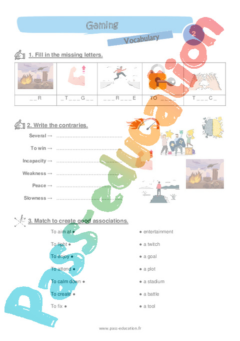2 Exercices Vocabulaire Gaming : Primaire 6 Secondaire 1 pdf