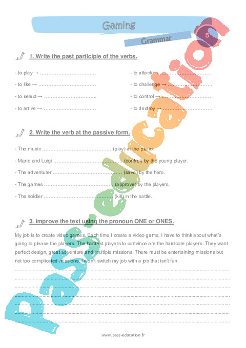 5 Grammar exercices Gaming : Primaire 6 Secondaire 1 . rtf