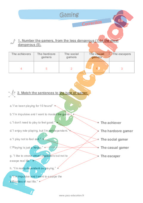 6b Reading Exercices Correction Gaming : Primaire 6 Secondaire 1 . pdf
