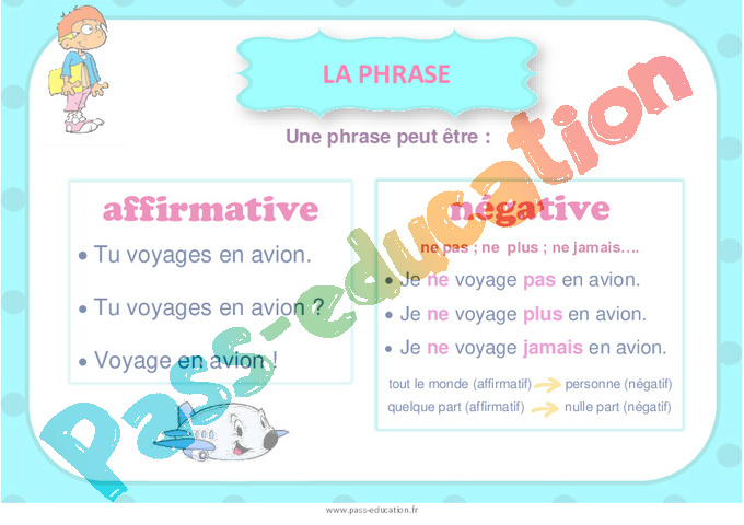 Phrase affirmative et négative – Affiche de classe pdf