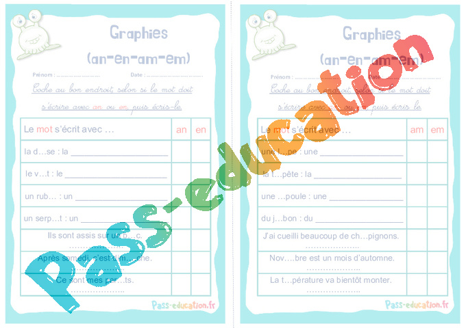 Graphies (an-en-am-em) : Primaire 2, 3 – Rituels Correction pdf