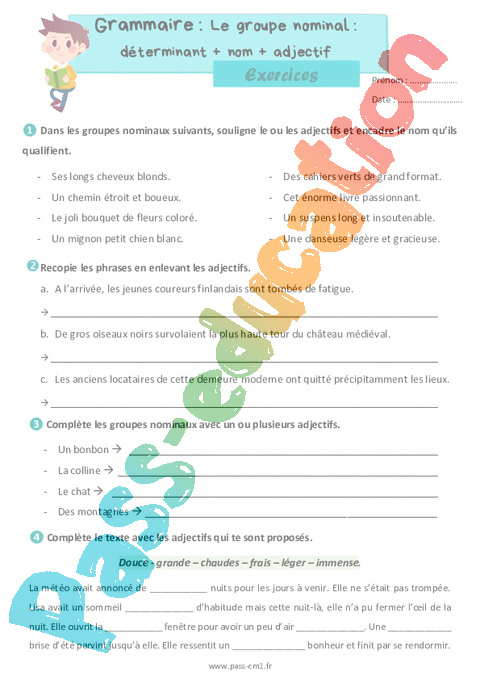 Exercices Correction : Primaire 4 groupe nominal déterminant + nom + adjectif pdf