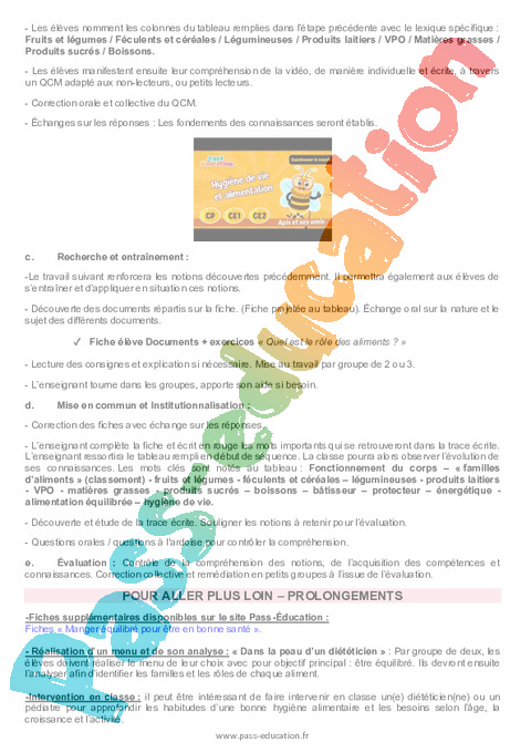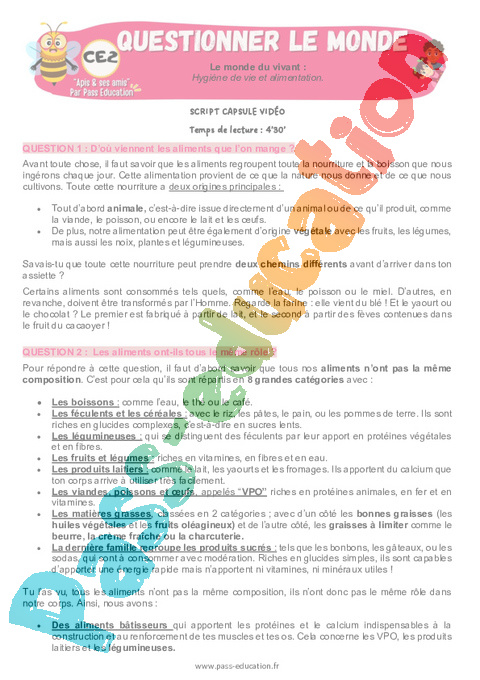 2 Script Hygiène de vie et alimentation : Primaire 3 pdf