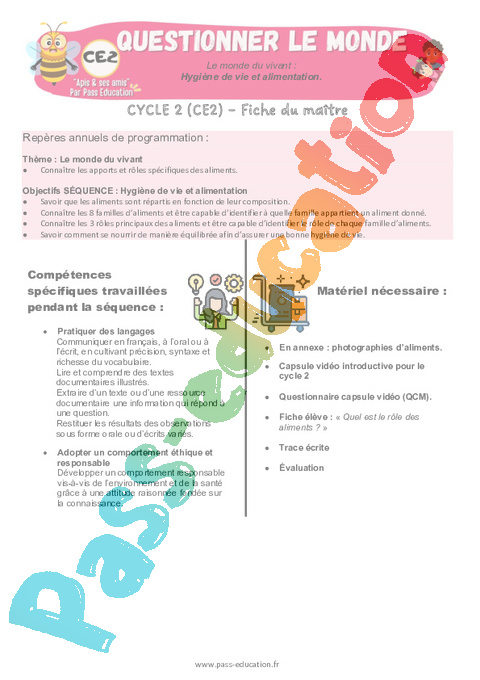 1 Fiche de préparation Hygiène de vie et alimentation : Primaire 3 pdf